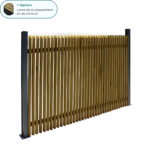 L’écran Shadow mise sur un design aérien et moderne avec ses lames verticales finement espacées. Il structure l’espace tout en laissant passer la lumière et l’air, offrant une sensation de légèreté et de transparence. Son esthétique épurée s’intègre parfaitement à tous les styles d’aménagement extérieur.
